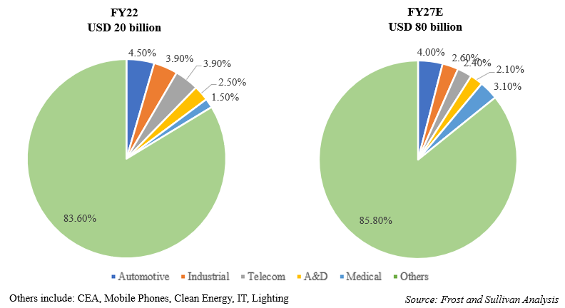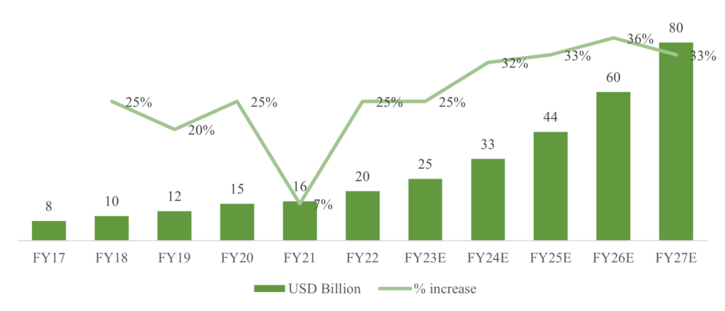 Even though the global ESDM market is expected to grow at a low single digit CAGR, India is going to outperform the market. The Indian ESDM industry is expected to grow at a CAGR of 32.5% from FY22 to FY27 as opposed to 22.2% CAGR recorded from FY17 to FY22.