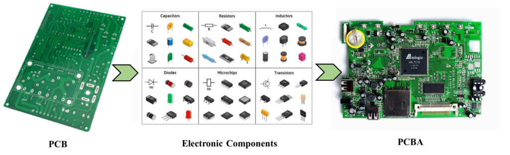 The board on the left side is the bare PCB. Various automated and manual processes are done to solder components on it based on the product requirements. Some of the domestic manufacturers of bare PCB include Shogini Technoarts Pvt. Ltd., AT&S India Pvt. Ltd., Ascent Circuits Pvt. Ltd, Epitome Components, etc.