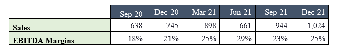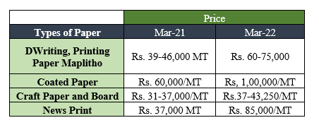 The buoyancy in the prices continues due to issues in raw material availability, rise in chemical prices, logistics prices. Mondi, a leading packaging company in Europe highlighted in its conference call on 3rd March 2022 that the prices are 20-25% higher than the average of 2021. The high-cost base remains amid favorable demand and tight supply scenarios.