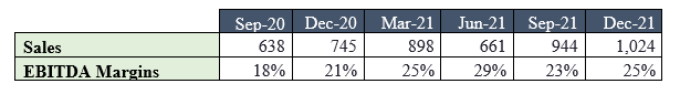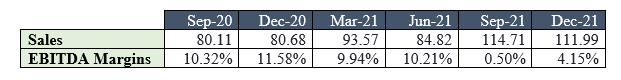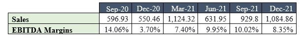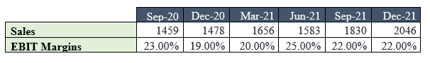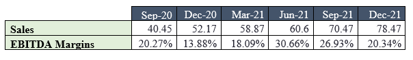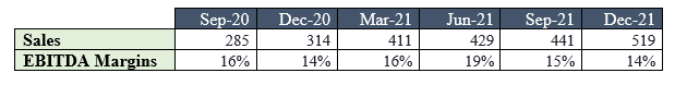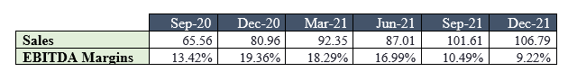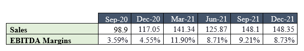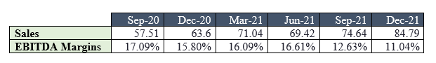 3. The company has been able to maintain sales growth and range-bound EBITDA margins