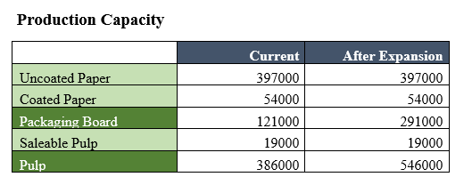 The company did an expansion by 170,000 TPA in the packaging board segment at Songadh, Gujarat to take advantage of this growing segment in the paper industry. The company also set up a pulp mill to cater to the new expansion.