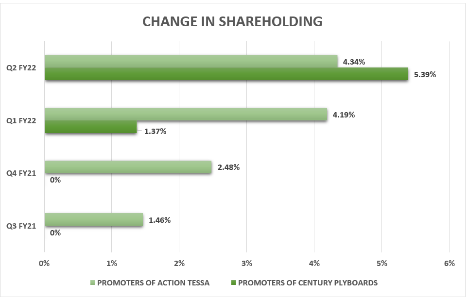 When promoters buy-back, it is a positive sign. But, when the competitor companies’ promoters take stake in the peer company that significantly boosts investor confidence as they are the most clued people to know about the industry prospects. This keenly watched attribute adds to the assurance factor for the investor. This scenario is being seen in the emerging MDF industry. The leading MDF players like Century Plyboards and Action Tessa have bought stake in Rushil Décor.